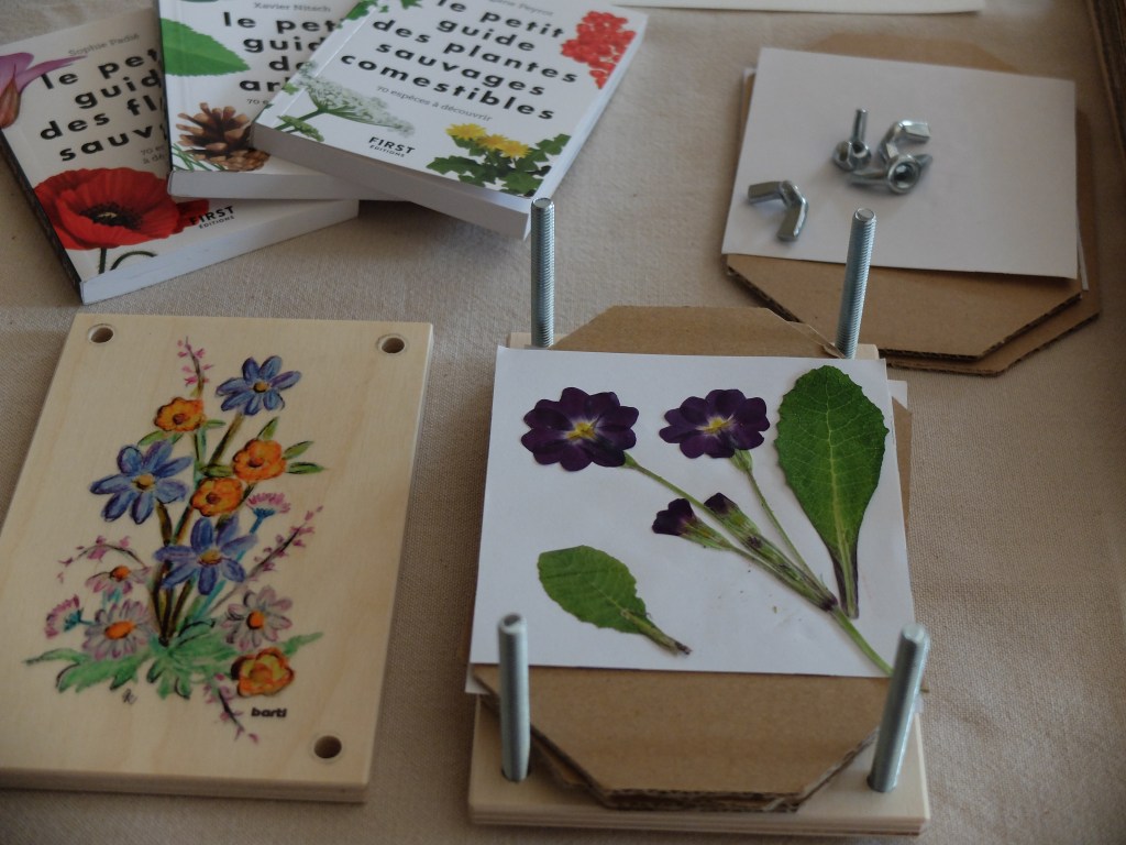 Par ce temps de confinement, il est important de faire des activités dans le jardin. Nous sortons donc le matériel que ma fille a reçu à Noël pour créer un herbier.